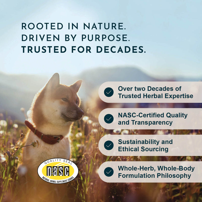 At Animal Essentials, we craft clean, effective herbal supplements from whole, natural ingredients—because your pet deserves wellness you can trust. For over 30 years, we’ve blended traditional herbal wisdom with modern safety standards to create formulas that support the body’s natural healing processes without fillers or harsh chemicals. Every product is vet recommended and NASC certified.