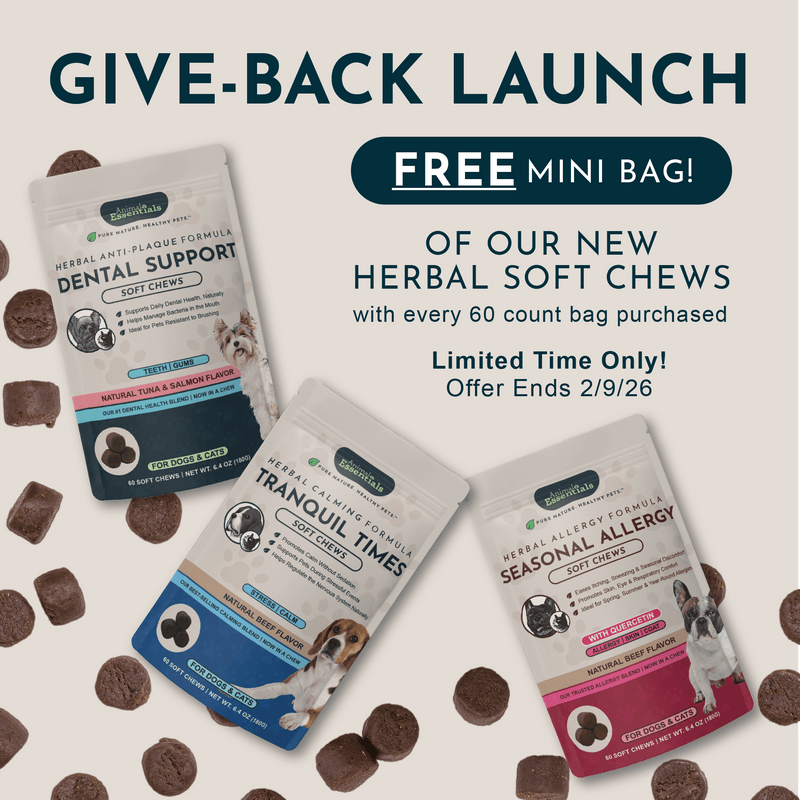 At Animal Essentials, we craft clean, effective herbal supplements from whole, natural ingredients—because your pet deserves wellness you can trust. For over 30 years, we’ve blended traditional herbal wisdom with modern safety standards to create formulas that support the body’s natural healing processes without fillers or harsh chemicals. Every product is vet recommended and NASC certified.