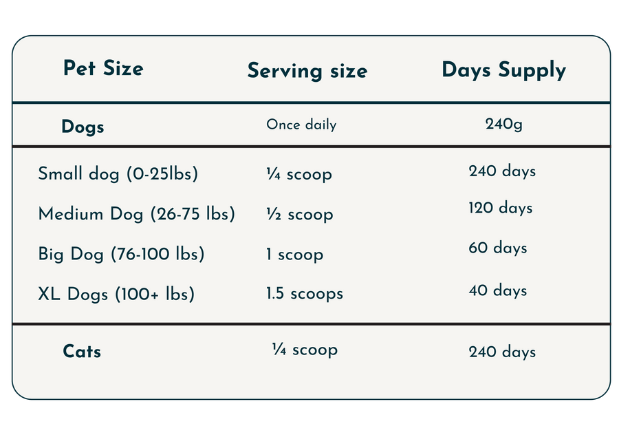 Directions: Best if administered directly into the mouth or combined with your pet’s regular routine, once daily.